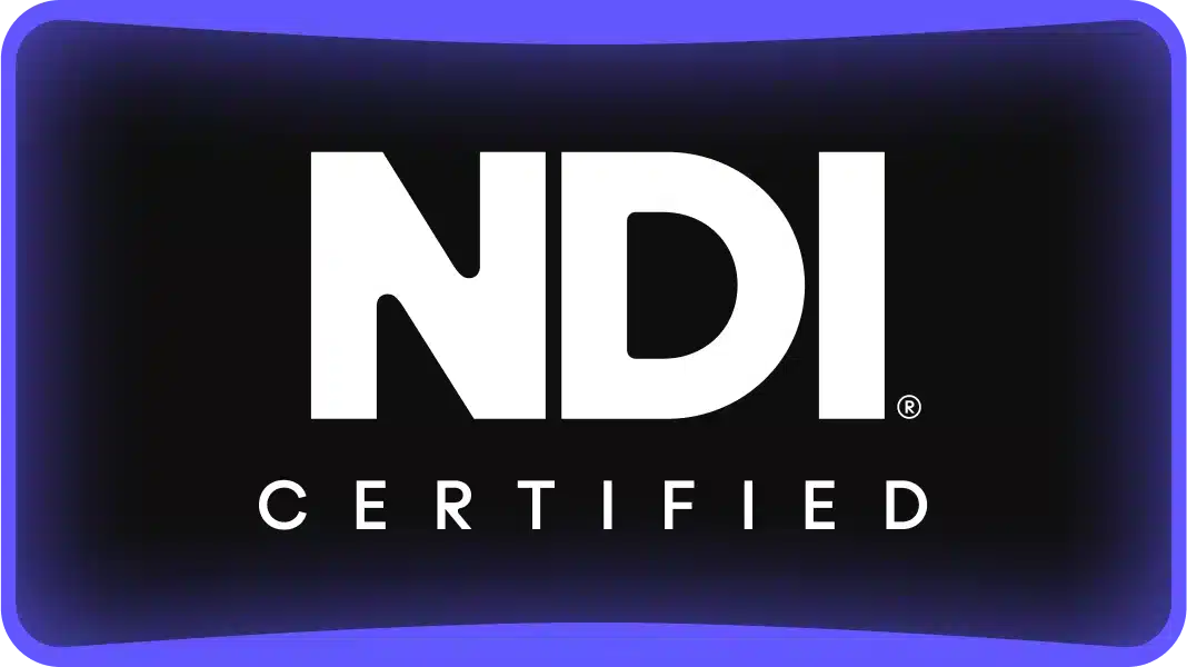 NDI stands for Network Device Interface, a video connectivity standard that enables multimedia systems to identify and communicate with one another over IP and to encode, transmit, and receive high-quality, low latency, frame-accurate video and audio, and exchange metadata in real-time.